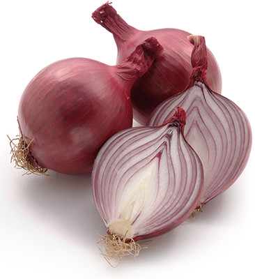 These are easily recognised by their burgundy red skins and red tinged flesh. Spanish type red onions are large and round, while Californian red onions tend to be flatter and milder.